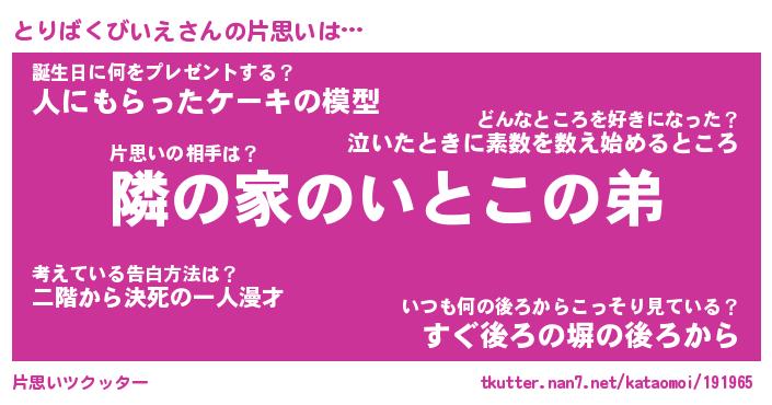 | 男性向けラノベタイトル風あだ名 | 『とりばくびいえの憂鬱』 |