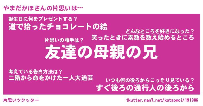 | 胡散臭い通販商品みたいなあだ名 | 『億万長者になれるブレスレット…その名も「やまだかほ」』 |