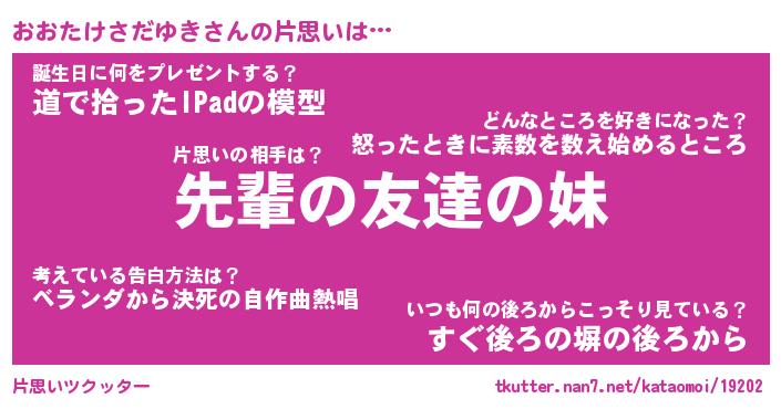 | 胡散臭い通販商品みたいなあだ名 | 『モテモテ間違いなし霊験あらたかなお札…その名も「おおたけさだゆき」』 |