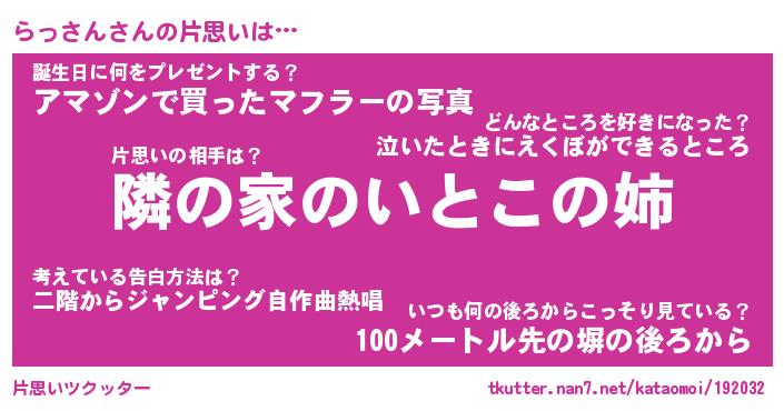 | 意味不明あだ名 | 『ペロリンらっさん』『永久保存らっさん』 |