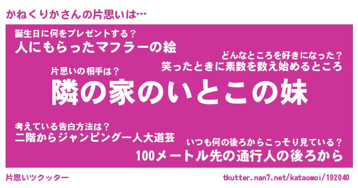 | 男性向けラノベタイトル風あだ名 | 『かねくりかの憂鬱』 |