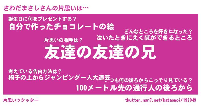 | 胡散臭い通販商品みたいなあだ名 | 『億万長者になれる霊験あらたかなお札…その名も「さわだまさし」』 |