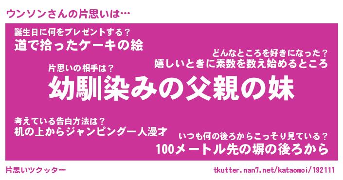 | 男性向けラノベタイトル風あだ名 | 『ウンソンの憂鬱』 |