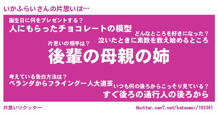 | 胡散臭い通販商品みたいなあだ名 | 『億万長者になれるブレスレット…その名も「いかふらい」』 |
