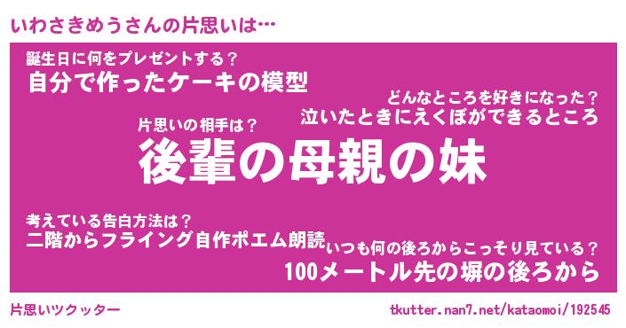 | ヒーロー風カッコイイあだ名 | 『スーパーイワサキメウ』『暗黒騎士イワ』 |