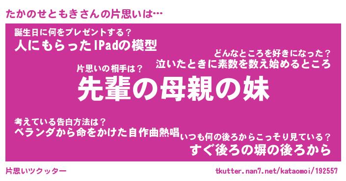 | ヘコむあだ名 | 『たかにー』『酢こんぶ』『たか太郎』 |