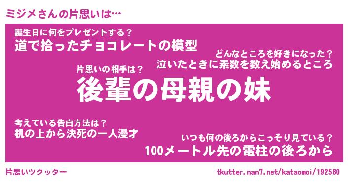 | ファンタジー風あだ名 | 『ミジフェル』『エターナルミジメー』 |