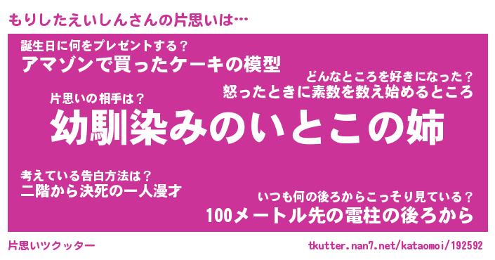| 男性向けラノベタイトル風あだ名 | 『もりしたえいしんの憂鬱』 |
