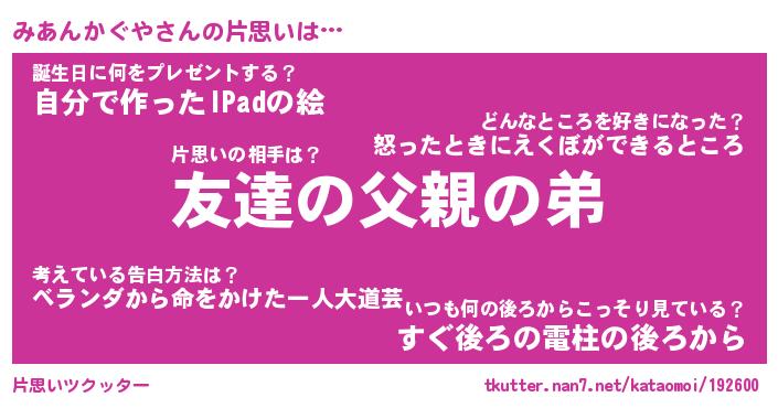 | 胡散臭い通販商品みたいなあだ名 | 『億万長者になれる水晶球…その名も「みあんかぐや」』 |