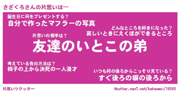 | ヘコむあだ名 | 『さざにゅー』『つくし』『さざっぺ』 |