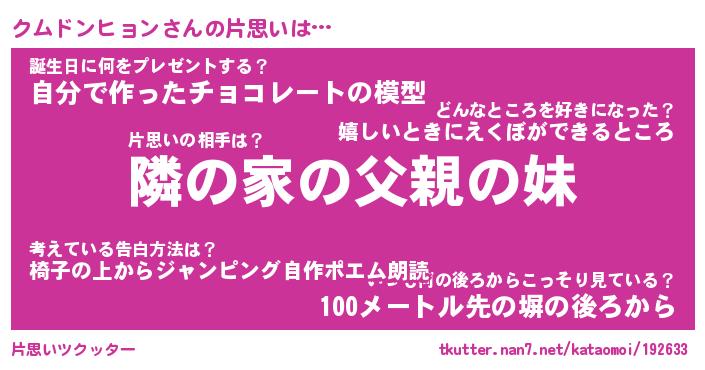 | 意味不明あだ名 | 『ペロリンクムドンヒョン』 |