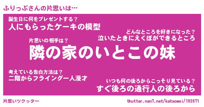 | 男性向けラノベタイトル風あだ名 | 『ふりっぷの憂鬱』 |