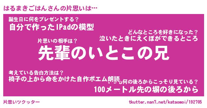| ヘコむあだ名 | 『はるもー』『つくし』『はるお』 |