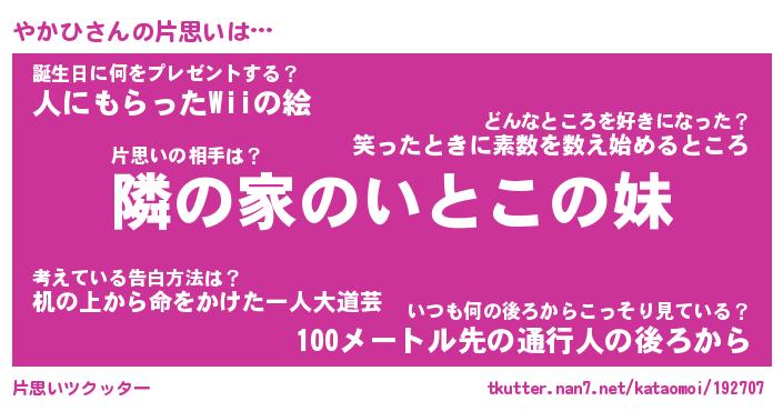 | 2回繰り返すあだ名 | 『やかやか』『ややかか』『ぬれぬれ』 |