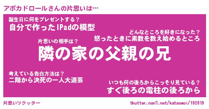 | ポケモン風あだ名 | 『アボチュウ』『アボカダネ』 |
