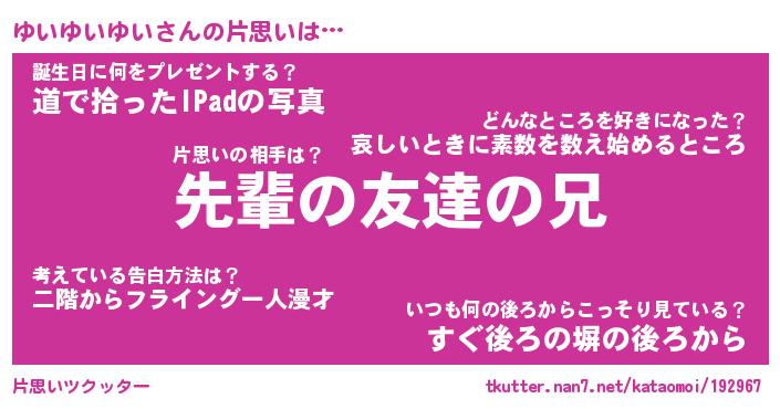| ヘコむあだ名 | 『ゆいっふぃ~』『酢こんぶ』 |