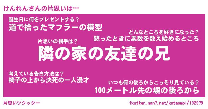 | ファンタジー風あだ名 | 『ケンフェル』『エターナルケンレンー』 |