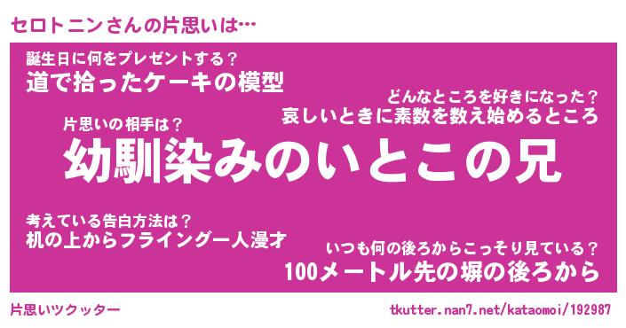 | 胡散臭い通販商品みたいなあだ名 | 『必ず成功する霊験あらたかなお札…その名も「セロトニン」』 |