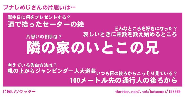 | ヘコむあだ名 | 『ブナにゅー』『なまこ酢』 |