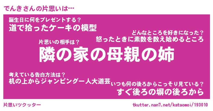 | 男性向けラノベタイトル風あだ名 | 『でんきの憂鬱』 |