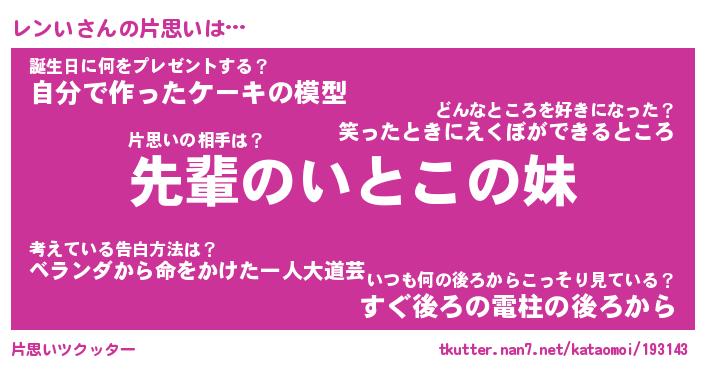 | ヘコむあだ名 | 『レンもー』『つくし』『レンっ子』 |