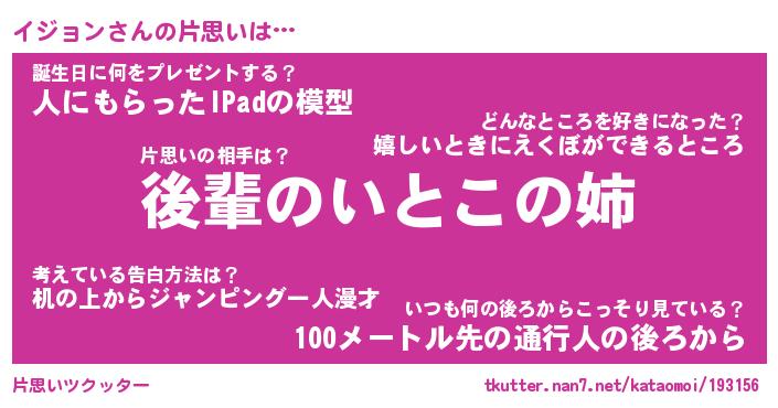 | 2回繰り返すあだ名 | 『イジイジ』『イイジジ』『いじいじ』 |