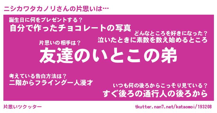 | 女子向けラノベタイトル風あだ名 | 『誰かこのニシカワタカノリを説明してください! ~契約から始まるウェディング~』 |
