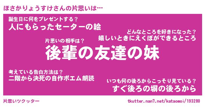 | 胡散臭い通販商品みたいなあだ名 | 『モテモテ間違いなし霊験あらたかなお札…その名も「ほさかりょうすけ」』 |
