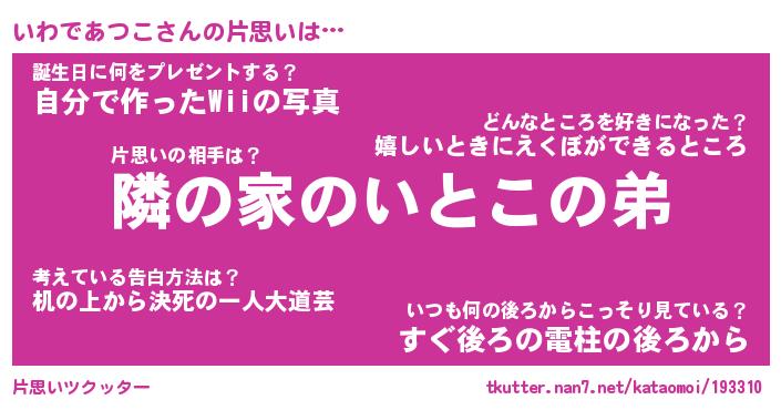 | ヘコむあだ名 | 『いわもー』『つくし』『いわ太郎』 |