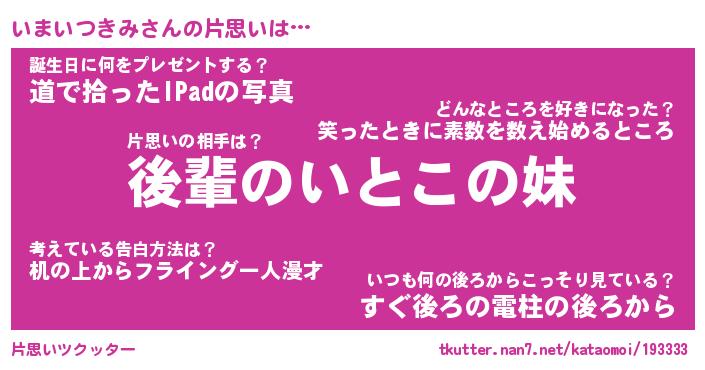 | 胡散臭い通販商品みたいなあだ名 | 『モテモテ間違いなし水晶球…その名も「いまいつきみ」』 |