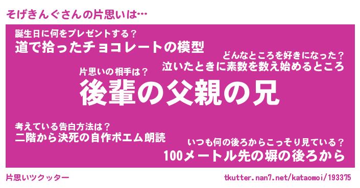 | 胡散臭い通販商品みたいなあだ名 | 『モテモテ間違いなし水晶球…その名も「そげきんぐ」』 |