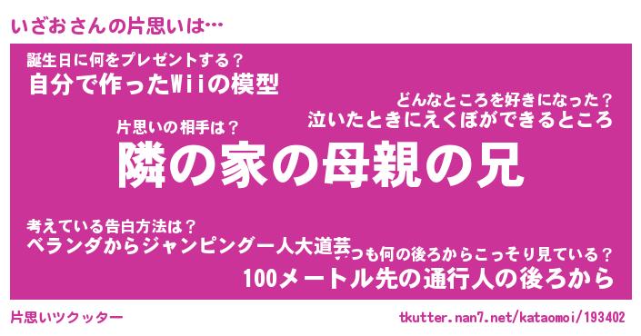 | 男性向けラノベタイトル風あだ名 | 『いざおの憂鬱』 |