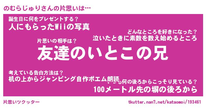 | ツイッター | のむらじゅりさんのツイッターID『fukuyoka_idle』 |