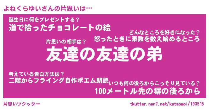 | 伝説のあだ名 | 『封印されしスナイパーよねくらゆい』 |
