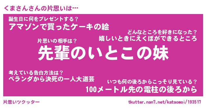 | 意味不明あだ名 | 『ペロリンくまさん』『永久保存くまさん』 |