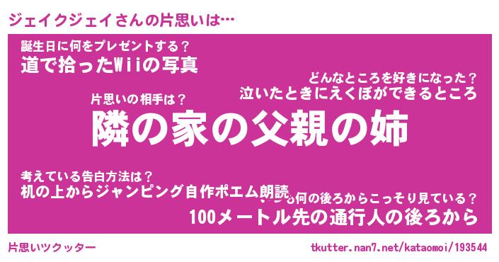 | ヘコむあだ名 | 『ジェふぇ~』『牛乳』『ジェ太郎』 |