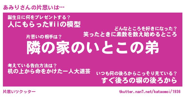 | 胡散臭い通販商品みたいなあだ名 | 『必ず成功する霊験あらたかなお札…その名も「あみり」』 |