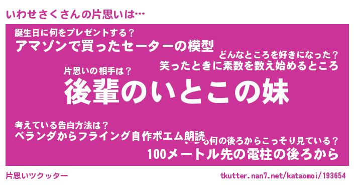 | 胡散臭い通販商品みたいなあだ名 | 『モテモテ間違いなし霊験あらたかなお札…その名も「いわせさく」』 |