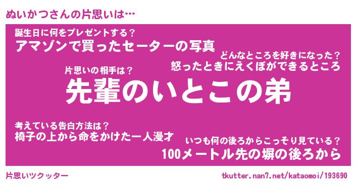 | ファンタジー風あだ名 | 『ヌイフェル』『エターナルヌイカツー』 |