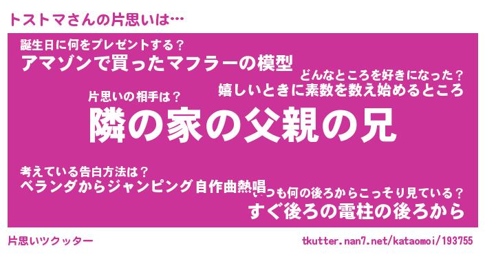 | 男性向けラノベタイトル風あだ名 | 『トストマの憂鬱』 |