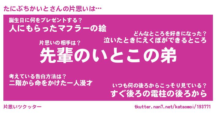 | 胡散臭い通販商品みたいなあだ名 | 『モテモテ間違いなし水晶球…その名も「たにぶちかいと」』 |