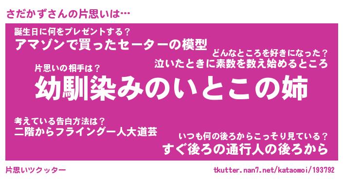 | ファンタジー風あだ名 | 『サダフェル』『エターナルサダカズー』 |
