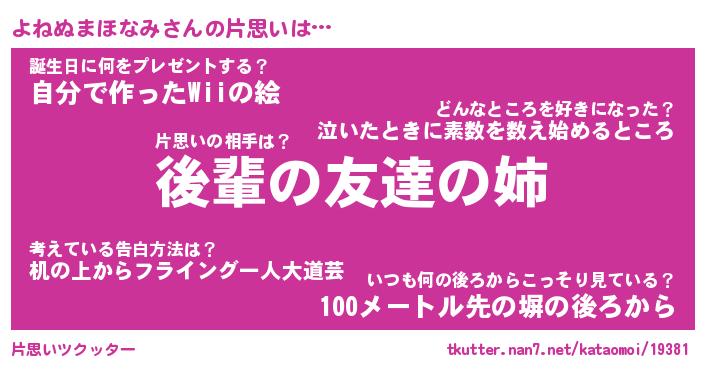 | ヘコむあだ名 | 『よねっふぃ~』『つくし』 |