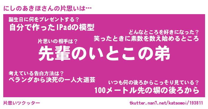 | ピコ太郎風あだ名 | 『ニコ四郎』『ピニ六郎』『ニシ一郎』 |