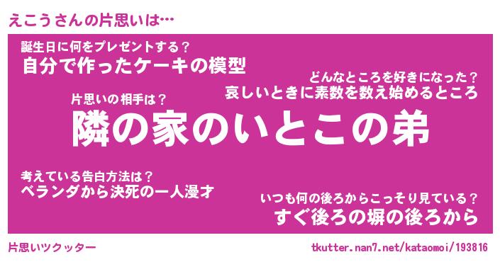 | ヘコむあだ名 | 『えこもー』『牛乳』『えこ太郎』 |