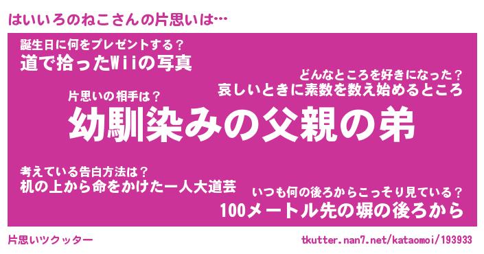| 胡散臭い通販商品みたいなあだ名 | 『必ず成功する水晶球…その名も「はいいろのねこ」』 |