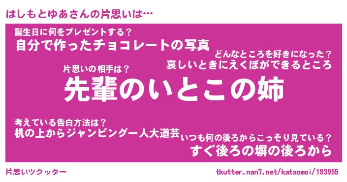 | ヘコむあだ名 | 『はしにゅー』『つくし』 |