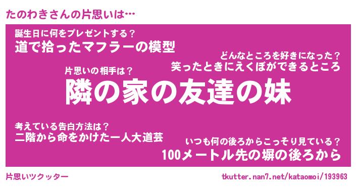 | 意味不明あだ名 | 『ペロリンたのわき』『永久保存たのわき』 |