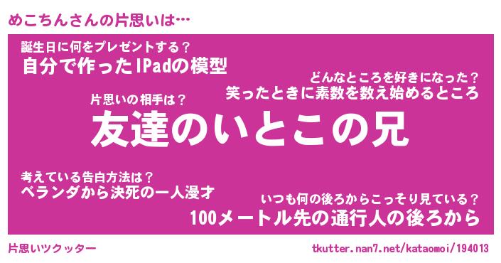 | ヘコむあだ名 | 『めこにゅー』『なまこ酢』 |
