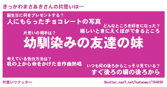 | ヘコむあだ名 | 『きっもー』『なまこ酢』『きっお』 |